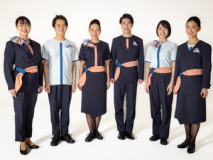 Le uniformi degli assistenti di cabina di AirJapan sono state progettate per esprimere la filosofia del marchio “Fly Thoughtful”: gli assistenti di cabina sono stati coinvolti fin dalle prime fasi di progettazione delle nuove divise che promuovono una forza lavoro diversificata e inclusiva, secondo un concetto gender-neutral.