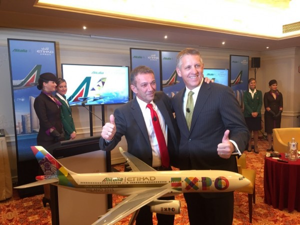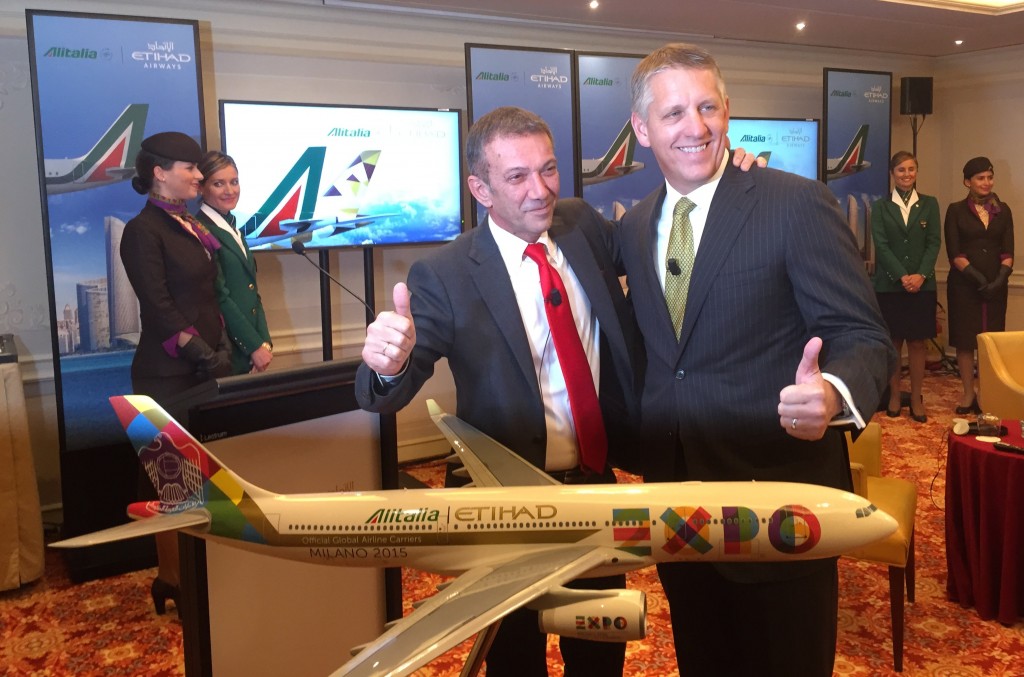 Ariodante Valeri, cco Alitalia, insieme a Jim Mueller, senior vp global sales Etihad