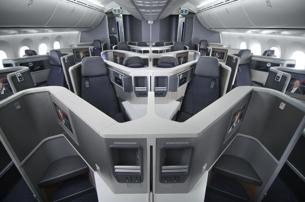 Il primo Boeing 787 della flotta American Airlines debutterà sullalla rotta Dallas/Fort Worth – Chicago O’Hare il prossimo 7 maggio. In seguito il B 787 entrerà in servizio sulle rotte internazionali: il 2 giugno con il collegamento Dallas – Pechino ); il 4 giugno con il Dallas – Buenos Aires. Nel corso del 2015, American assegnerà il Dreamliner ad ulteriori destinazioni non appena i nuovi aeromobili saranno consegnati. «L’introduzione del 787 Dreamliner consentirà di aumentare la nostra efficienza sul lungo raggio e di aggiungere nuove destinazioni al nostro network – dichiara Andrew Nocella, chief marketing officer di American Airlines -. Si tratta di una grande conquista per i nostri passeggeri ed è un perfetto esempio di come American stia pensando in grande». Dotato di una cabina configurata in due classi, il 787-8 di American, offre 28 poltrone di business class(nella foto) completamente reclinabili, alternate rispetto alla direzione di volo e disposte in configurazione 1-2-1. La “Main cabin” è dotata di 48 poltrone “Main Cabin Extra” nella configurazione 3-3-3, in grado di offrire ai passeggeri fino a sei centimetri supplementari di spazio per le gambe, e 150 poltrone “Main cabin”, anch’esse nella configurazione 3-3-3.