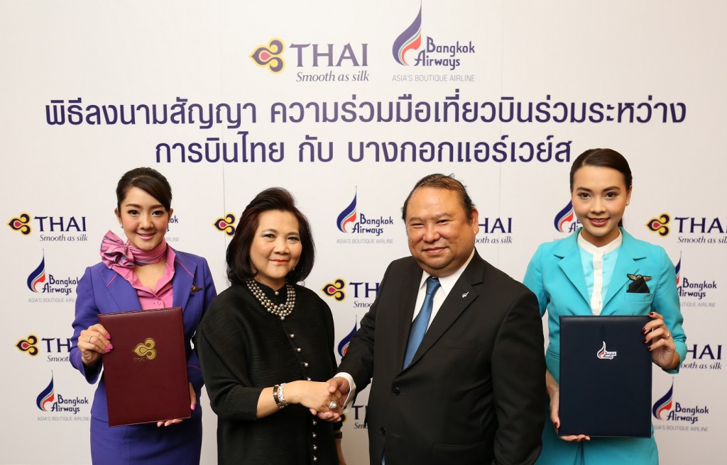 Bangkok Airways ha siglato un accordo di code share con Thai Airways International nell’intento di rafforzare i rispettive network, per facilitare le vendite commerciali, e per migliorare la convenienza dei passeggeri sui collegamenti aerei tra i due vettori. Thai opera su 61 destinazioni in tutto il mondo mentre l’attuale network di Bangkok Airways, rappresentata in Italia da Spazio Gsa, copre più di 12 destinazioni domestiche e 16 internazionali con forti collegamenti con i paesi Asean e la compagnia aerea continua ad espandere la propria rete di collegamenti. Questa cooperazione contribuirà a rafforzare il rapporto tra le due compagnie aeree, così come ai rispettive network, successivamente elevando la qualità del servizio per i vettori aerei thailandesi, che sostengonono la Thailandia come l’hub dell’Asean. Il code share agreement è applicabile sulle seguenti tratte: voli domestici operati da Bangkok Airways su 10 rotte, Bangkok-Samui, Bangkok-Chiang Mai, Bangkok-Chiang Rai, Bangkok-Phuket, Bangkok-Krabi, Bangkok-Lampang, Bangkok-Sukhothai, Bangkok-Trat, Chiang Mai-Mae Hong Son e Samui-Phuket; voli internazionali operati da Bangkok Airways su 4 tratte: Bangkok-Danang (Vietnam), Bangkok-Luang Prabang (Laos), Bangkok-Maldives (Malé), e Bangkok-Siem Reap (Cambodia). Voli operati da Thai Airways sulla rotta internazionale Bangkok-Singapore e altre tratte future sono in fase di considerazione.