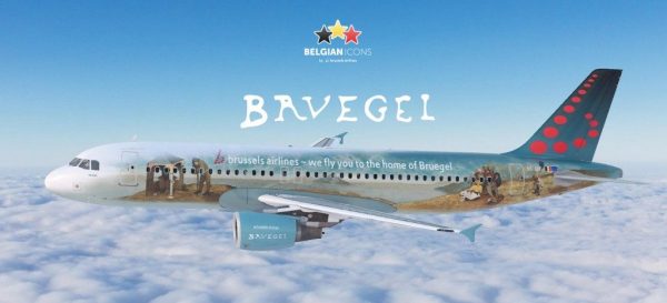 In concomitanza con le celebrazioni per il 450° anniversario dalla morte di Bruegel Il Vecchio, nel 2019 Brussels Airlines ha scelto di rendere omaggio a questo Maestro Fiammingo. Per l’occasione, la compagnia aerea si unisce a VisitFlanders e a Bozar, Centro di Belle Arti di Bruxelles. I tre partner hanno così commissionato due artisti belgi contemporanei, Jos de Gruyter e Harald Thys, di immaginare il design per un aeromobile che guarda al lavoro del Maestro fiammingo, ma dal punto di vista del proprio stile artistico. Nonostante siano separati da 450 anni, il maestro di ieri e i due artisti di oggi condividono il modo con cui osservano il mondo reale, i suoi luoghi, le persone, i paesaggi e le abitudini. Inoltre, hanno in comune il fatto di abitare la stessa terra: il Belgio, che oltre ad essere il luogo in cui vivono e lavorano, è anche una grande fonte di ispirazione per le rispettive produzioni artistiche.