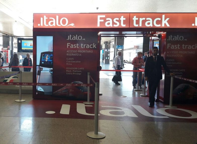 E’ operativo il fast track targato Italo. Dall’11 giugno è infatti attivo un varco “prioritario” presso la stazione di Roma Termini (prima stazione del network Italo ad offrire questa possibilità), al quale possono accedere i viaggiatori Italo con un biglietto in ambiente Club o Prima e i possessori delle carte Italo Più Black, Platinum, Privilege e Gold Corporate. Il nuovo servizio è l’ideale per chi arriva in stazione all’ultimo minuto e per chi vuole evitare le attese, consentendo di attraversare velocemente i varchi e raggiungere il proprio treno. E’ molto semplice usufruire del servizio fast track, occorre solamente presentarsi al varco mostrando il proprio biglietto di viaggio o una delle carte Italo Più che ne garantiscono l’accesso (sempre accompagnate dal biglietto). Il varco fast track è presidiato quotidianamente e nelle ore di maggior affluenza il personale Italo di stazione è a disposizione dei viaggiatori che si recano presso il varco, per fornire loro assistenza last minute oltre che supportarli nell’acquisto e modifica dei loro biglietti. «Il fast track sta già riscontrando un notevole successo fra i passeggeri, consentendo loro di trarre ogni beneficio da un servizio simile che evita le attese e riduce le file».