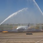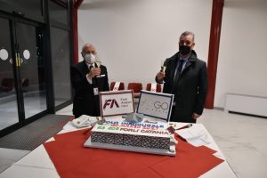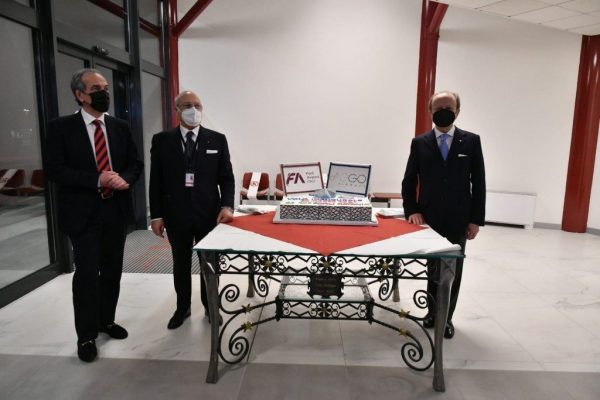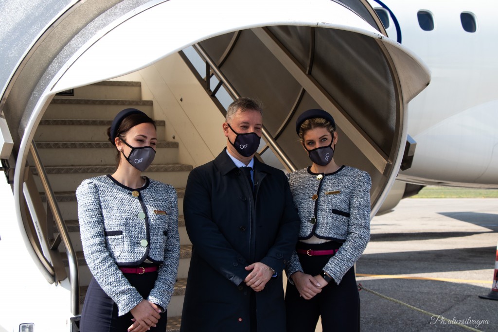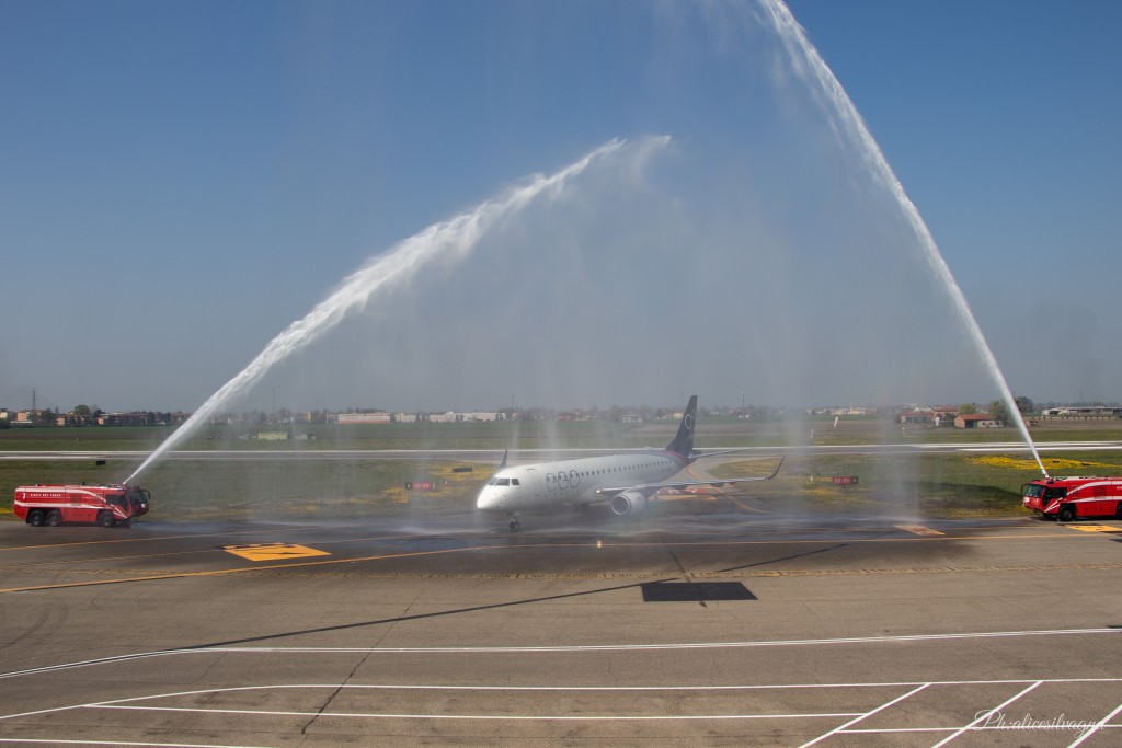 Prima dell’arrivo del volo Giuseppe Silvestrini, Presidente di FA, e Matteo Bonecchi, ceo della compagnia aerea milanese, hanno tagliato una torta celebrativa dell’evento, mentre ad accogliere l’arrivo dell’aereo c’è stato il suggestivo water cannon dei vigili del fuoco, che ha battezzato il primo atterraggio della compagnia aerea sullo scalo forlivese.