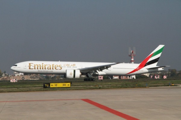 Il Boeing 777-300ER di Emirates airlines che collegherà Bologna a Dubai