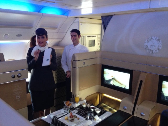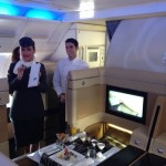 A due mesi dall’apertura del volo su Roma, Etihad Airways ha celebrato il successo del collegamento portando a Fiumicino la sua pluripremiata First Class. Solo per oggi la rotta Roma – Abu Dhabi è stata infatti operata con un Airbus A340-600 a tre cabine, che ha permesso dunque di mostrare le tre classi di servizio a bordo con i relativi concept: Economy, Business e First. «L’Italia è un mercato importante per noi – ha detto Aubrey Tiedt, vice president guest services di Etihad Airways – e molti dei nostri servizi sono influenzati dallo stile e dall’attitudine italiana». Tra i servizi innovativi che il vettore propone, spicca sicuramente la Flying Nanny, la tata a bordo che accompagna il viaggio dei più piccoli anche in Economy. In Business Class, da evidenziare il servizio di “Any Time Dining” grazie al quale il food and beveradge manager di bordo concorda con il passeggero i tempi di riposo e dei pasti. Incredibili poi i dettagli proposti in First Class: dalla porta scorrevole che chiude il proprio posto, al piccolo guardaroba con una stampella, al minibar con acque minerali e frutta secca, al tavolino per cenare in due uno di fronte all’altro, alla poltrona sempre con parte superiore in pelle e reclinabile a 180°. Ciliegina sulla torta, lo chef che cucina a bordo e personalizza il menu su misura.