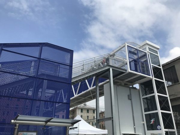 E’ stata inaugurata la nuova passerella pedonale sovrastante la linea ferroviaria a Genova Sestri Ponente Aeroporto. Realizzata da Rete Ferroviaria Italiana (gruppo Fs Italiane) in pochi mesi, con un investimento di oltre 2,8 milioni di euro, si inserisce nelle attività che il gruppo Fs ha da subito attivato dopo il crollo del viadotto autostradale Morandi, per migliorare i collegamenti da e per Genova e l’intermodalità tra i diversi vettori. Lunga sessanta metri e larga quattro, coperta da tettoia e attrezzata con grigliati frangivento e illuminazione a led, mette in connessione la stazione di Genova Sestri Ponente Aeroporto con il nuovo punto di fermata Amt dei bus navetta per l’aeroporto. Abbattute anche le barriere architettoniche grazie ai due nuovi ascensori dotati di telecamere. Si agevolerà così l’uso del mezzo pubblico per raggiungere l’aeroporto di Genova. Al via inoltre, nell’area riqualificata e illuminata di via Cibrario, anche il nuovo servizio navetta Flybus di Amt che collega direttamente la stazione Fs di Sestri Ponente e l’aeroporto Cristoforo Colombo di Genova con una corsa ogni 15 minuti, dalle 6 alle 22, e un tempo di percorrenza di soli 5 minuti. Il servizio sarà accessibile gratuitamente fino al 30 giugno.