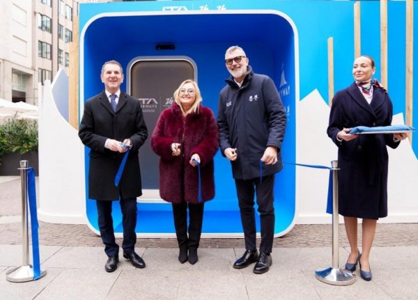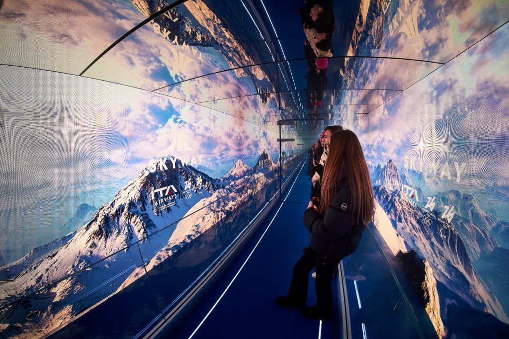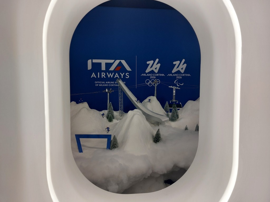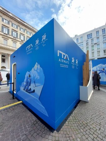 Ita Airways partecipa al grande appuntamento dei Giochi Olimpici e Paralimpici Invernali Milano-Cortina 2026 con lo showcasing Skyway. Allestito fino al 15 marzo in Piazza San Carlo a Milano – vicino al Duomo – è una struttura in bianco e azzurro (i colori di Ita Airways) che offre un’esperienza immersiva con prospettive e sorprese, rappresentando il viaggio della compagnia verso i Giochi. Il visitatore entra in uno spazio senza confini, dove il viaggio prende forma tra suono, movimento e velocità. Bello il parallelo pensato dalla compagnia; una competizione sportiva attraversa le stesse fasi di un volo aereo: preparazione, partenza, accelerazione, sfida e arrivo. All’interno del pavillon, aperto al pubblico, si legge: “Benvenuti in Skyway, l’installazione che racconta un viaggio che può avvenire su una pista, tra le nuvole o dentro di noi. Perché quando la destinazione è importante, il viaggio lo è ancora di più”.