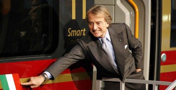Nella foto Luca Cordero di Montezemolo indica la bandiera italiana per sottolineare l’italianità del nuovo treno (altri tempi!)