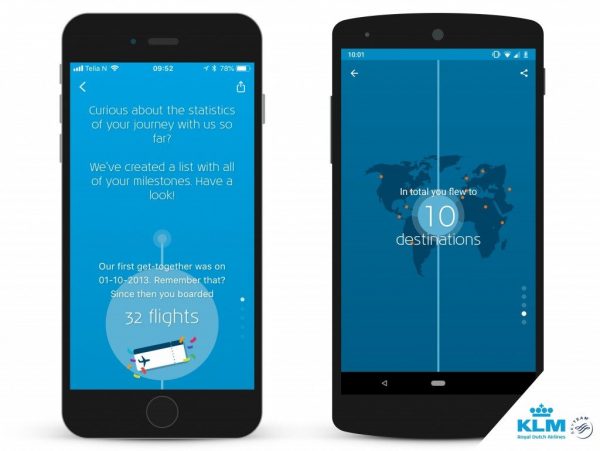 Klm annuncia l’introduzione di Milestones, la nuova funzione dell’app mobile che consente ai passeggeri di visualizzare un’ampia varietà di informazioni personali sulla propria cronologia dei voli. Milestones consente di controllare quanto tempo e quanto spesso ha volato, quante destinazioni ha visitato, quanti chilometri ha percorso e quanti bagagli ha imbarcato. L’applicazione Klm include già la possibilità di prenotare voli, effettuare il check-in online, scaricare le carte d’imbarco, prenotare posti a sedere o pagare per l’extra-bagaglio e visualizzare la Schiphol Airport Map, che permette di orientarsi rapidamente in aeroporto.