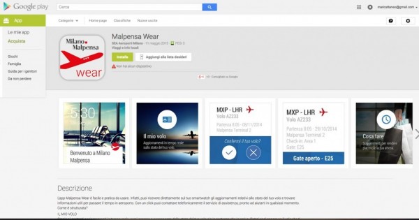 Con Milano Malpensa Wear e Milano Linate Wear, Sea lancia la prima applicazione in Italia e in Europa per smartwatch Android Wear di un aeroporto. L’applicazione (in italiano e inglese) si divide in quattro funzionalità specifiche: “Welcome” (grazie ai beacon installati in aeroporto, l’utente al suo arrivo nel terminal viene accolto con un messaggio di benvenuto); “Il mio volo” (l’utente è sempre a conoscenza dello stato del volo, in partenza o in arrivo); “Cosa fare” (consigli su negozi, ristoranti e sale d’attesa); “assistenza clienti” (tramite lo smartwatch, si potrà comporre con facilità il numero del Servizio Clienti Sea). Le app sono disponibili sul Google Play Store ai seguenti indirizzi: Linate https://play.google.com/store/apps/details?id=it.sea.smartwatch.linate&hl=it