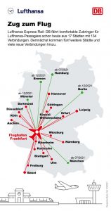 Attualmente sono 134 i treni giornalieri che attraverso la partnership Db-Lufthansa collegano l’aeroporto di Francoforte da 17 città tedesche. La Lufthansa Express Rail dal prossimo luglio aggiungerà al proprio network altre cinque città – Berlino, Amburgo, Brema, Münster e Monaco di Baviera – che saranno collegate attraverso servizi ad alta velocità con l’hub di Lufthansa; ed entro dicembre il numero delle tratte e della città coperte dal servizio, sarà incrementato. E’ la prima volta che i treni ad alta velocità “Sprinter” raggiungono l’hub tedesco.