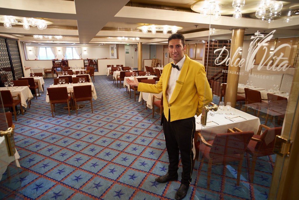 I ristoranti di bordo di Corsica Sardinia Ferries sono caratterizzati da una cucina mediterranea di ispirazione italiana e francese: «L’attenzione al dettaglio è fondamentale lungo tutta la filiera del servizio di ristorazione e per mantenere alti standard qualitativi, privilegiamo prodotti freschi e genuini» commenta Sebastien Romani, direttore del catering e dei servizi generali, che si occupa della gestione della divisione Food&Beverage della flotta. «Oltre a garantire il pieno controllo di tutte le attività di bordo – dalla scelta delle materie prime alla composizione dei piatti – rivolgiamo un’attenzione particolare alla creazione dei menu, che vengono ruotati settimanalmente, e alla scrittura della carta: quest’ultima garantisce la tracciabilità delle materie prime utilizzate, specificando gli ingredienti dei piatti, note fondamentali in caso di intolleranze alimentari». Da alcuni anni Corsica Sardinia Ferries si avvale della collaborazione di chef stellati e dal 2016 Matteo Temperini coordina il lavoro degli chef di bordo. Il giovane chef toscano, insignito di una stella Michelin nel 2012, ha lavorato da Alain Ducasse, tra Parigi e Monaco, è stato senior chef assistant all’Enoteca Pinchiorri di Firenze, head chef al Ristorante Gallopapa in Castellina in Chianti, da Alfonso Iaccarino a Sant’Agata sui Due Golfi ed Executive Chef al Ristorante La Sponda dell’Hotel Le Sireneuse di Positano. Nella ricchissima carta dei ristoranti figurano piatti regionali, secondi di pesce e di carne, proposte vegetariane e menu degustazione a prezzo fisso come il Mediterraneo o il Gastronomico, con la possibilità di scegliere fra totani alla ligure con patate, pomodorini e sedano filé o insalata di pesce spada marinato con crudité di melone, mela e basilico, per proseguire con ravioli di pesce bianchi e neri con pomodori, capperi, olive e basilico, o linguine all’aragosta, per continuare con grigliate miste di pesce, fritto misto, filetto di manzo o formaggi serviti con confetture.