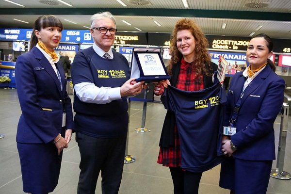 L’aeroporto di Milano Bergamo ha festeggiato il transito del 12milionesimo passeggero del 2017, nuovo record assoluto annuale, che permetterà di chiudere l’anno in corso con oltre un milione di passeggeri in più rispetto al 2016, quando se ne registrarono 11 milioni 160mila. La fortunata passeggera, Chiara Filipponi, laureanda in psicologia clinica, residente a Carnate (provincia di Monza Brianza), in partenza per Lisbona con volo Ryanair è stata premiata con una targa ricordo, la vip card, un voucher per volare dall’aeroporto di Bergamo insieme a una maglia celebrativa, indossata da tutto il personale aeroportuale, e una speciale palla natalizia, omaggiata a tutti i passeggeri presenti in aerostazione, recante la scritta “12 milioni di passeggeri anche grazie a me” a significare il contributo generale al raggiungimento dello storico traguardo.