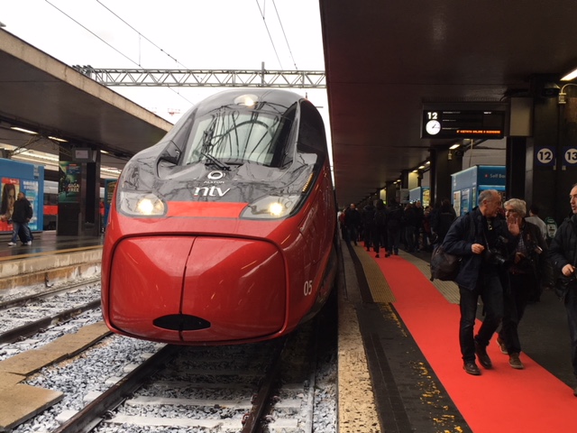 Il nuovo treno è stato inaugurato ufficialmente con un breve viaggio da Roma Termini a Roma Tiburtina, con tre passeggeri d’eccezione: il presidente Ntv Luca Cordero di Montezemolo, l’amministratore delegato Ntv Flavio Cattaneo e il ministro dello Sviluppo Economico Carlo Calenda. «Festeggiamo 5 anni di attività iniziata da un foglio bianco e senza aiuti pubblici, ma solo con un grande rischo imprenditoriale – ha detto Montezemolo -. Oggi accogliamo Evo, orgoglio interamente italiano, che porterà un passo in avanti in qualità e servizio, assunzione di nuovo personale a un aumento delle frequenze. Si tratta di una macchina all’avanguardia per comfort, sicurezza, impatto ambientale e performance». Soddisfatto del nuovo arrivo in flotta, anche il ministro dell’economia Calenda, che ha sottolineato l’importante percorso compiuto in questi anni da Ntv: «Ntv, con il suo ingresso sul mercato, è una delle migliori prove di quanto la concorrenza possa far muovere il Paese e allargare lo spazio per nuovi investimenti industriali. La concorrenza non vuol dire pressione sugli operatori bensì spazio agli operatori».