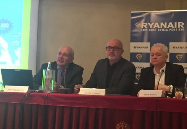 Ryanair picchia duro contro Alitalia. Ancora una volta. L’aumento delle tasse municipali applicate ai passeggeri in partenza dagli scali italiani è il nuovo campo di battaglia. David O’Brien, chief commercial officer di Ryanair, l’alfiere inviato sul campo insieme a John Alborante, sales & marketing manager Italy. «Il Governo italiano ha commesso un terribile errore con l’aumento delle tasse municipali che devono pagare i passeggeri – spiega O’Brien -: l’importo dal 1° gennaio è passato da 6,5 euro a 9 euro (a Roma Fiumicino da 7,5 a 10 euro). Una decisione che avvantaggia unicamente Alitalia-Etihad. Questi soldi vanno a sovvenzionare la cassa integrazione dei piloti Alitalia. Intanto, i passeggeri Ryanair pagheranno oltre 160 milioni di euro in tasse nel 2016». Presente questa mattina a Milano per la presentazione delle nuove rotte di Ryanair per l’inverno 2016-17,O’Brien ha portato avanti l’attacco ad Alitalia: «Fin quando la strategia del trasporto aereo italiano continuerà ad essere scritta ad Abu Dhabi, resterà fuori controllo. La strategia di Etihad è quella di concentrare tutto il traffico su Roma e da qui via verso Abu Dhabi». «Dove c’è Ryanair – aggiunge Alborante – gli aeroporti raggiungono record di crescita ed Bergamo Orio ne è un esempio. Oggi siamo la prima compagnia in Italia con 27 milioni di passeggeri e una quota di mercato pari al 25%».