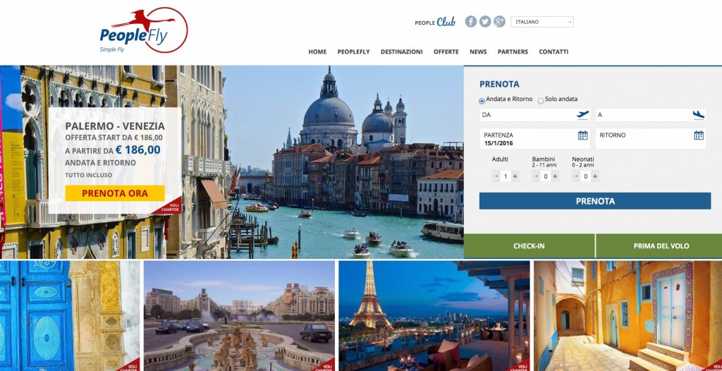 PeopleFly è una nuova azienda che offre voli charter operati dal vettore greco Olympus Airways per collegare direttamente Cagliari con tantissime città europee tra cui Londra, Amsterdam, Parigi, Berlino, Colonia, Vienna, Budapest, Copenaghen, Helsinki, Varsavia, Barcellona, Nizza, Ibiza, ma anche le italiane Palermo, Venezia, Ancona, nonchè con Tunisia e Marocco. Sarà più facile anche raggiungere direttamente la Romania e più precisamente le città di Arad e Bucarest, sia da Cagliari che da Ancona. «Molti imprenditori sardi del settore alberghiero, extralberghiero, della ristorazione, del commercio, dei prodotti tipici e dell’intrattenimento sono impegnati con noi in un lavoro comune sui mercati di provenienza dei turisti – spiega Andrea Caldart, ceo & founder di PeopleFly – ai quali rivolgiamo un’offerta vincente sotto il profilo del costo dei biglietti aerei ma soprattutto stabile per tutto l’anno. PeopleFly Srl ha sviluppato un nuovo business nel settore dei voli charter, realizzando nuove destinazioni, nuovi collegamenti e curandone sia la definizione del network (destinazioni e frequenze), sia la distribuzione e la vendita del prodotto. Vogliamo realizzare una nuova modalità di intermediazione nel settore del trasporto charter passeggeri, attenta alle necessità del cliente e rispettosa del ruolo della filiera turistica, dal tour operator, alle agenzie di viaggio, al singolo cliente. L’inizio delle nostre attività è sull’aeroporto di Cagliari, ma ci piacerebbe estendere il lavoro agli scali di Alghero, Olbia, Trapani e Ancona». Tutti i voli charter sono acquistabili direttamente sul portale www.peoplefly.it o presso le agenzie viaggi autorizzate, le “Fly Agency” oppure tramite call center Peoplefly. Oltre che da Olympus Airways, i voli sono effettuati da primarie compagnie aeree in possesso di regolare licenza d’esercizio con Airbus A319 da 144 posti.