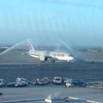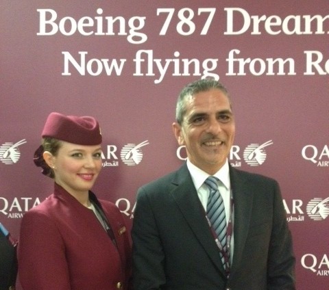 Con un suggestivo water cannon Qatar Airways ha celebrato l’introduzione del Boeing 787 sulla Roma-Doha. «Con l’orario estivo incrementiamo la capacità del 30% grazie all’utilizzo del Dreamliner su Roma e dell’A330 su Milano e Venezia – ha detto Angelo Bartolini, sales manager Qatar Airways in Italia -. Inoltre, abbiamo migliorato le coincidenze con le destinazioni strategiche per il mercato servito da Roma, sia business come Cina e Giappone, sia leisure come Bali e Giacarta, Phuket, Katmandu. Inoltre, con l’incremento di capacità daremo nuove opportunità anche ai molti turisti stranieri che vogliono venire a visitare Roma, dando nuovo impulso all’incoming». Il Boeing 787 ha una configurazione di 22 posti in business e 232 in economy, e offre importanti vantaggi in termini di comfort, come ad esempio la migliore qualità dell’aria in cabina grazie alla minore pressurizzazione, ed economici grazie ai minori consumi di carburante ed emissioni.