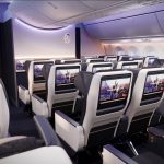 La Premium Economy (39 posti) prevede una disposizione 2-3-2, passo di 38“, sedili larghi 19,2”, ante privacy, reclinazione avanzata e schermi da 15,6”.