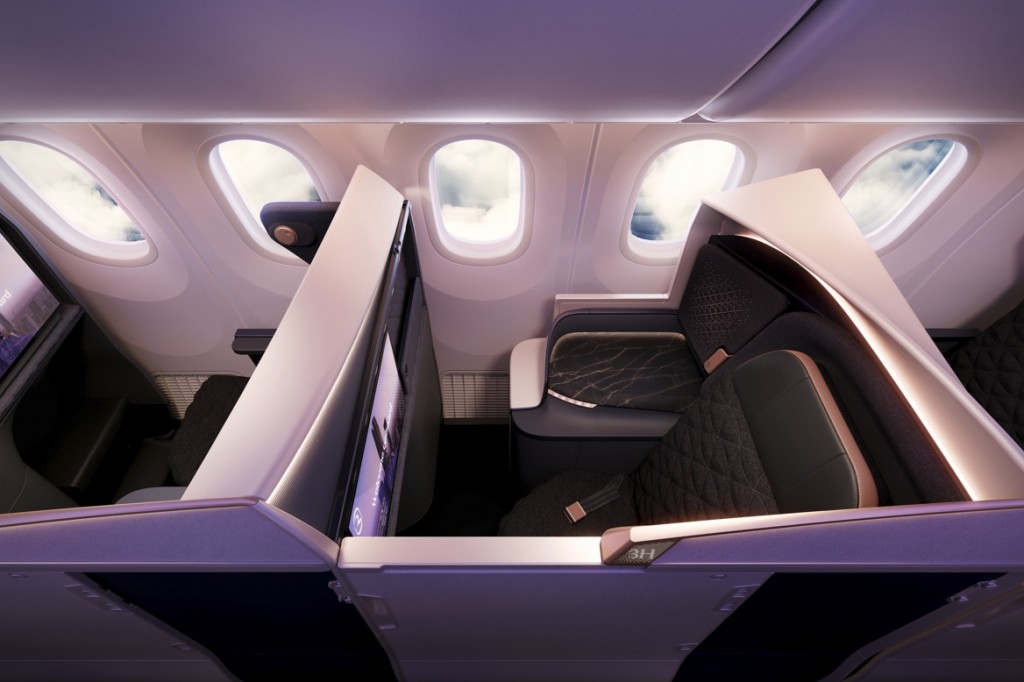 Business Elite (4 posti) e Business Class (24 posti) prevedono Sedili Safran Unity completamente piatti in una disposizione 1-2-1 con porte a garantire la privacy, schermi Oled 4K da 32”, altoparlanti Devialet incorporati nei poggiatesta e un letto matrimoniale in alcuni posti Business Elite.