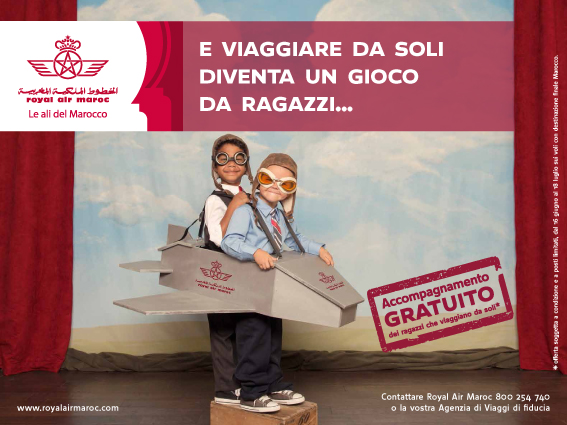Royal Air Maroc offre gratuitamente il servizio di minori non accompagnati (Um) in classe economica, a tutti i bambini di età compresa tra i 2 e i 12 anni non compiuti, che viaggiano da soli con destinazione finale il Marocco, a partire dal 18 giugno al 31 luglio. Per qualsiasi informazione è operativo il call center della compagnia aerea al numero 800.254.740.