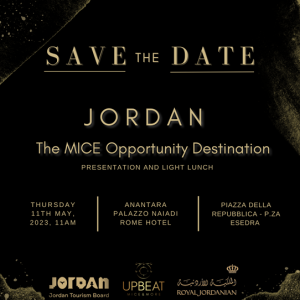 L’evento ‘Jordan – The Mice Opportunity Destination’ avrà luogo alle ore 11.00 presso l’hotel Anantara, dove saranno presenti anche alcuni dmc locali. “Mentre la destinazione Giordania registra un vero e proprio boom della domanda leisure, ora il focus di Royal Jordanian è quello di incentivare e supportare l’incremento del traffico legato a congressi, incentive e grandi eventi. E non soltanto affiancando le iniziative del Jtb, ma anche con una proposta estremamente flessibile e disponibile nei confronti delle esigenze di questo particolare tipo di clientela. Basti pensare ai grandi numeri di posti da gestire con tempistiche spesso molto strette”.