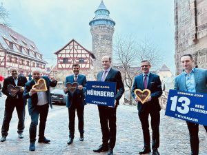 Ryanair ha inaugurato la sua ottava base in Germania, a Norimberga: qui – con un investimento di 200 milioni di dollari e 60 posti di lavoro diretti locali – la low cost ha posizionato due aeromobili e lanciato 13 nuove rotte per l’estate 2022 (complessivamente 27, per un totale di 85 voli alla settimana), quando allo scalo saranno collegati 13 paesi in tutta Europa. Nel dettaglio, le new entry sono: Banja Luka, Cagliari, Chania, Dublino, Faro, Girona, Ibiza, Lviv, Madeira, Sofia, Tallinn, Valencia e Venezia.