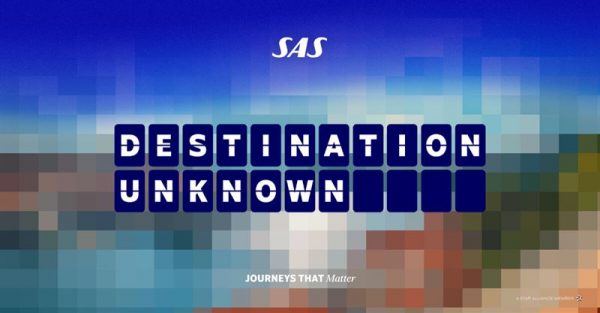 Boom di adesioni all’iniziativa “Destination Unknown” firmata Scandanavian Airlines: nell’arco di pochi minuti oltre 1.000 persone iscritte al programma EuroBonus si sono registrate sul sito di Sas per partecipare al viaggio misterioso, in calendario il prossimo 5 aprile. In pratica, i soci EuroBonus si incontreranno all’aeroporto di Copenhagen pronti a decollare verso una destinazione sconosciuta fino al momento dell’atterraggio.