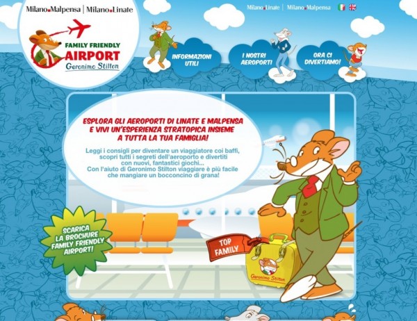 Sea con Geronimo Stilton lancia Family Friendly Airport anche al terminal 2 di Milano Malpensa dopo i riscontri positivi degli scorsi anni a Milano Linate e al terminal 1 di Malpensa. L’iniziativa, volta ad agevolare le famiglie in partenza dagli aeroporti milanesi, è frutto della collaborazione con Edizioni Piemme, sotto il coordinamento di Atlantyca Entertainment. La Family Lane sarà quindi attiva a Milano Linate: tutti i weekend (dal venerdì al lunedì) nel mese di luglio e dal 1 al 22 agosto, dalle ore 7.00 alle ore 21.00; a Milano Malpensa Terminal 1 e Terminal 2: tutto l’anno a partire dal 1 luglio, dalle ore 7.00 alle ore 21.00. La segnaletica personalizzata con le immagini di Geronimo Stilton indirizzerà le famiglie verso una corsia dedicata che consentirà di accedere più velocemente ai filtri di sicurezza. La Family Lane si rivolge a chi viaggia con bambini e ragazzi fino ai dodici anni compiuti. In quest’occasione sarà distribuito il libretto pensato per i piccoli lettori in una versione arricchita, con tutte le informazioni utili per viaggiare in aeroporto insieme alla famiglia – dai controlli di sicurezza ai servizi dedicati a Milano Linate e Milano Malpensa – e tanti “stratopici” giochi a tema.