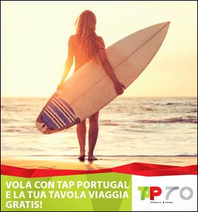 Tap Portugal offre a tutti coloro che partono dall’Italia, fino al 31 marzo 2016, il trasporto gratuito della propria tavola da surf, windsurf e kitesurf per la porzione di viaggio in andata. Per attivare la promozione, valida per i biglietti emessi in Italia, basta inviare una e-mail a abracciaaperte@tap.pt almeno una settimana prima della partenza, indicando gli estremi della prenotazione. Tap invierà una e-mail di conferma. Per conoscere tutti i dettagli: www.flytap.com/Italia/it/Promozioni/offerte/surf-friendly. Grazie a Tap, con partenze da Roma, Milano, Bologna e Venezia è possibile raggiungere le mete portoghesi di Peniche, Ericeira e il Guincho, e non solo. Grazie alla promo Tap tutti i surfer italiani potranno sfidare la forza dell’oceano nelle isole di Capo Verde, oppure cavalcare le onde della Florida e di tutte le spiagge della costa brasiliana.