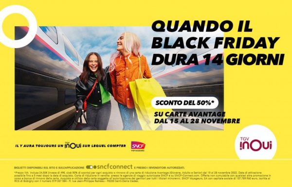 E’ valida fino al prossimo 28 novembre la promozione targata Tgv Inoui che prevede l’acquisto delle Carte Avantage a 24.50 euro, grazie ad uno sconto del 50%, che consentono di diventare clienti privilegiati per un anno intero.