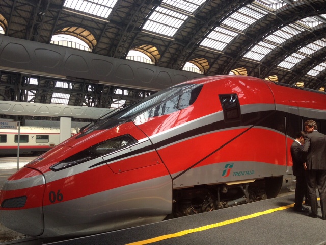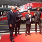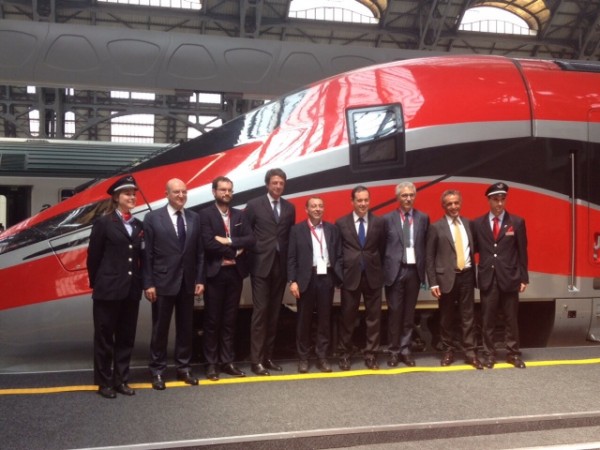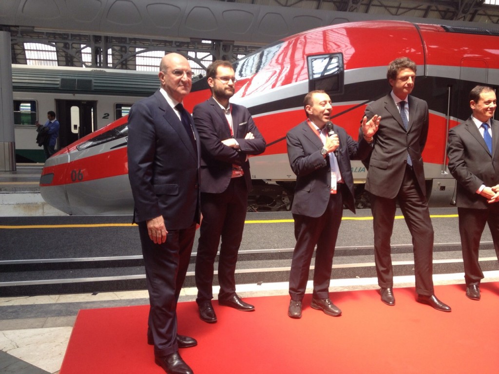 Con un viaggio inaugurale Roma-Milano, Trenitalia ha presentato oggi alla stampa e ad una delegazione di parlamentari europei il nuovo Frecciarossa 1000, il treno d’avanguardia, voluto da Trenitalia e realizzato per la maggior parte in Italia da AnsaldoBreda e Bombardier. Il nuovo Etr 1000 inizierà il servizio commerciale il 14 giugno, con l’entrata in vigore dell’orario estivo offrendo otto corse al giorno no stop tra Roma e Milano con prolungamenti su Torino e Napoli. «Etr 1000 rappresenta l’eccellenza italiana nell’alta velocità – ha commentato Michele Elia, amministratore delegato del Gruppo FS -, è altamente performante e può raggiungere i 400 km orari, anche se i limiti di omologazione attuali non permettono una velocità superiore ai 300 km. A dicembre però il limite sarà portato a 350 km e allora potremo recuperare tempi in maniera più evidente». Ad oggi i nuovi treni in flotta sono sei, ma per dicembre 2015 saliranno a 18-20 e verranno utilizzati anche su altre rotte. «E’ un treno realizzato al 90% con materiali riciclabili e ha un impatto ambientale notevolmente ridotto per cui ha ottenuto la certificazione EPD – puntualizza Elia».