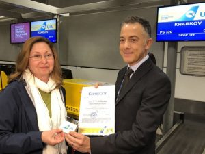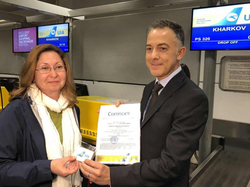 «Ukraine International Airlines contribuisce ad ampliare il nostro network in Ucraina e permettere di fruire di una serie di collegamenti intercontinentali che la compagnia garantisce in prosecuzione dall’aeroporto di Kiev Boryspil» dichiara Giacomo Cattaneo, direttore aviation di Sacbo. In occasione del volo inaugurale con Kharkiv, la compagnia ha premiato il terzo passeggero presentatosi in ordine di tempo al check-in consegnando un biglietto valido per due persone su una delle tre rotte servite dall’aeroporto di Milano Bergamo. A beneficiarne è stata la signora Olena Podkopay (nella foto con Cattaneo), residente a Calco in provincia di Lecco.