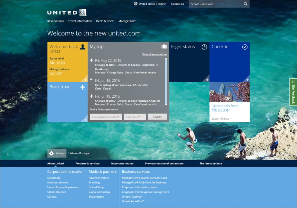 United Airlines ha lanciato la versione beta della nuova homepage della compagnia e dei servizi di prenotazione dei voli per united.com, che comprende tutto, dalla ricerca all’elenco delle opzioni di volo, fino alla prenotazione e all’acquisto dei biglietti. Il sito offre un design elegante, moderno e touch-friendly, assieme a caratteristiche nuove personalizzate e strumenti per aiutare i clienti a selezionare i voli e le opzioni di viaggio che sappiano soddisfare al meglio le loro esigenze. Gli utenti possono navigare e prenotare sul sito in anteprima visitando beta.united.com. La compagnia lancerà ufficialmente il nuovo united.com nel corso dell’estate in seguito ai feedback degli utenti. «Abbiamo ripensato l’esperienza di prenotazione dei voli da zero – ha dichiarato Scott Wilson, vice presidente merchandising ed ecommerce di United -. Siamo andati oltre al semplice rinnovo della grafica, ponendo le esigenze e le preferenze dei nostri clienti verso la personalizzazione del proprio viaggio al centro stesso del design per offrire un’esperienza completamente nuova e migliorata». In cifre, il nuovo sito coinvolgerà 2.000 visitatori al minuto, per oltre 1 milione di dollari di fatturato all’ora e oltre 1.400 destinazioni disponibili.
