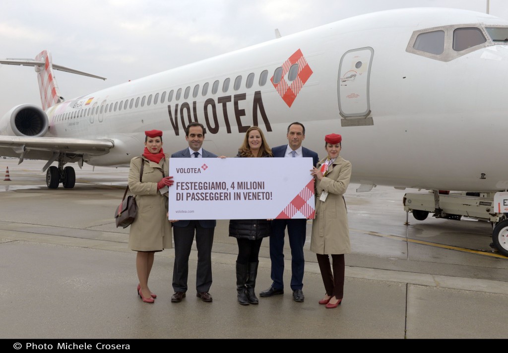 Volotea ha tagliato il traguardo dei 4 milioni di passeggeri trasportati in Veneto. La fortunata passeggera, che si aggiudica un anno di voli gratuiti, si chiama Nadia Brino ed è di Treviso. Per il 2018 la low-cost stima di offrire da Venezia e da Verona un milione e 800 mila posti, il 20% in più rispetto allo scorso anno, con sei nuove destinazioni: due da Venezia e quattro da Verona. Venezia sarà collegata con nove destinazioni in Italia– Alghero, Bari, Brindisi, Cagliari, Catania, Lampedusa, Olbia, Palermo e Pantelleria – e 27 all’estero: Bordeaux, Marsiglia, Nantes e Tolosa in Francia, Alicante, Asturie, Bilbao, Malaga, Palma di Maiorca, Santander e Saragozza (novità 2018). Da non dimenticare poi i voli verso Spalato e Dubrovnik, Atene, Corfù, Creta, Cefalonia, Karpathos (novità 2018), Kos, Mykonos, Preveza Lefkada, Rodi, Samos, Santorini, Skiathos e Zante in Grecia e, infine, Praga. Nel 2018 Verona verrà collegata con 20 destinazioni: Alghero, Bari, Brindisi, Cagliari, Catania, Lampedusa, Napoli, Olbia, Palermo e, novità 2018, Pantelleria; Ibiza, Palma di Maiorca e Minorca, Santorini e Mykonos e le due novità 2018, Atene e Creta; Irlanda (Cork), Albania (Tirana) e Portogallo (Faro, novità 2018).