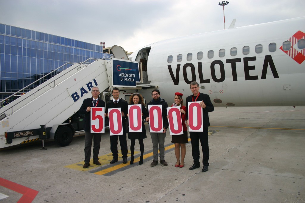 Volotea ha festeggiato il traguardo dei 500 mila passeggeri trasportati in Puglia premiando Luca Ruospo, ingegnere di 33 anni che vive e lavora a Putignano, con 10 biglietti andata e ritorno. Alla cerimonia è intervenuta Valeria Rebasti, commercial country manager di Volotea per l’Italia: «Infrangere il tetto dei 500 mila passeggeri premia la nostra strategia di investire localmente: crediamo molto nelle potenzialità turistiche della Puglia, tanto da aver incrementato per il 2016 i collegamenti disponibili sia da Bari che da Brindisi». Sono 13 le rotte operate da Volotea presso l’aeroporto di Bari: a Catania, Palermo, Venezia, Verona e Olbia (novità per l’estate 2016) si aggiungono i voli internazionali verso Ibiza, Palma di Maiorca, Atene, Creta, Mykonos, Santorini, Skiathos e Zante (altra novità per la prossima estate). Non vanno infine dimenticati i collegamenti dallo scalo di Brindisi, da cui è possibile decollare verso Venezia, Verona e Genova (disponibile da maggio 2016). «Per il 2016 andremo in vendita con più di 350 mila biglietti, pari ad un incremento del 17,87% rispetto al 2015». Da febbraio 2016 la flotta del vettore verrà ampliata con l’aggiunta di quattro Airbus 319. Nell’ultimo anno Volotea ha aumentato del 30% il numero dei voli, per un giro d’affari di quasi 210 milioni di euro (rispetto ai 160 del 2014).