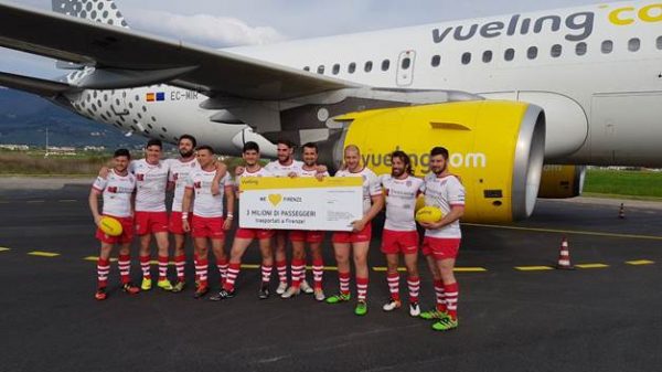 Vueling ha raggiunto i 3 milioni di passeggeri trasportati presso l’aeroporto di Firenze, dove è leader per posti offerti, e per celebrarlo, ha chiesto la collaborazione di Toscana Aeroporti e di una delle squadre più amate dai fiorentini: I Medicei. La compagnia aerea, sapendo quanto è popolare il rugby tra i fiorentini, ha quindi chiesto la collaborazione de I Medicei invitandoli a confrontarsi con un aereo Vueling per svolgere un “allenamento alternativo” e dare prova della propria abilità. Il video dell’iniziativa è disponibile a questo link.«Quest’iniziativa organizzata a Firenze, uno dei nostri principali aeroporti in Italia – ha affermato David Garcia Blancas, chief commercial officer di Vueling – è davvero unica nel suo genere per festeggiare quest’importante traguardo, e con il supporto di Toscana Aeroporti, abbiamo ringraziato i 3 milioni di passeggeri in partenza da Firenze che ci hanno scelto come compagni di viaggio attraverso una delle loro più grandi passioni: il rugby!».
