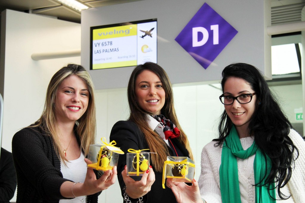 I passeggeri Vueling hanno ricevuto un uovo di Pasqua al momento di imbarcarsi sul volo VY6578 in partenza alle 16.40 da Roma Fiumicino a Gran Canaria, che sarà effettuato ogni sabato tutto l’anno. Vueling ha inaugurato la stagione estiva a Roma Fiumicino avviando, in occasione del periodo pasquale, dieci delle 21 nuove rotte previste proprio per l’estate: Bilbao e Gran Canaria in Spagna; Lione, Marsiglia e Nizza in Francia; Budapest in Ungheria, Londra Gatwick nel Regno Unito, Marrakech in Marocco, Stoccarda in Germania e Vienna in Austria.