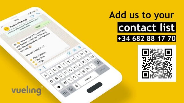 Vueling punta sull’innovazione con il lancio di WhatsApp Business API. L’introduzione di WhatsApp rientra nel più ampio processo di digitalizzazione di Vueling che, negli scorsi mesi, ha visto l’implementazione del Wi-Fi a bordo, di Google Pay e di altre innovazioni tecnologiche. Vueling è la prima compagnia aerea a introdurre un servizio WhatsApp per comunicare con i suoi clienti. L’introduzione di WhatsApp Business API fa parte dell’impegno di Vueling nello sviluppo di soluzioni innovative per un’esperienza di viaggio ancora più confortevole.